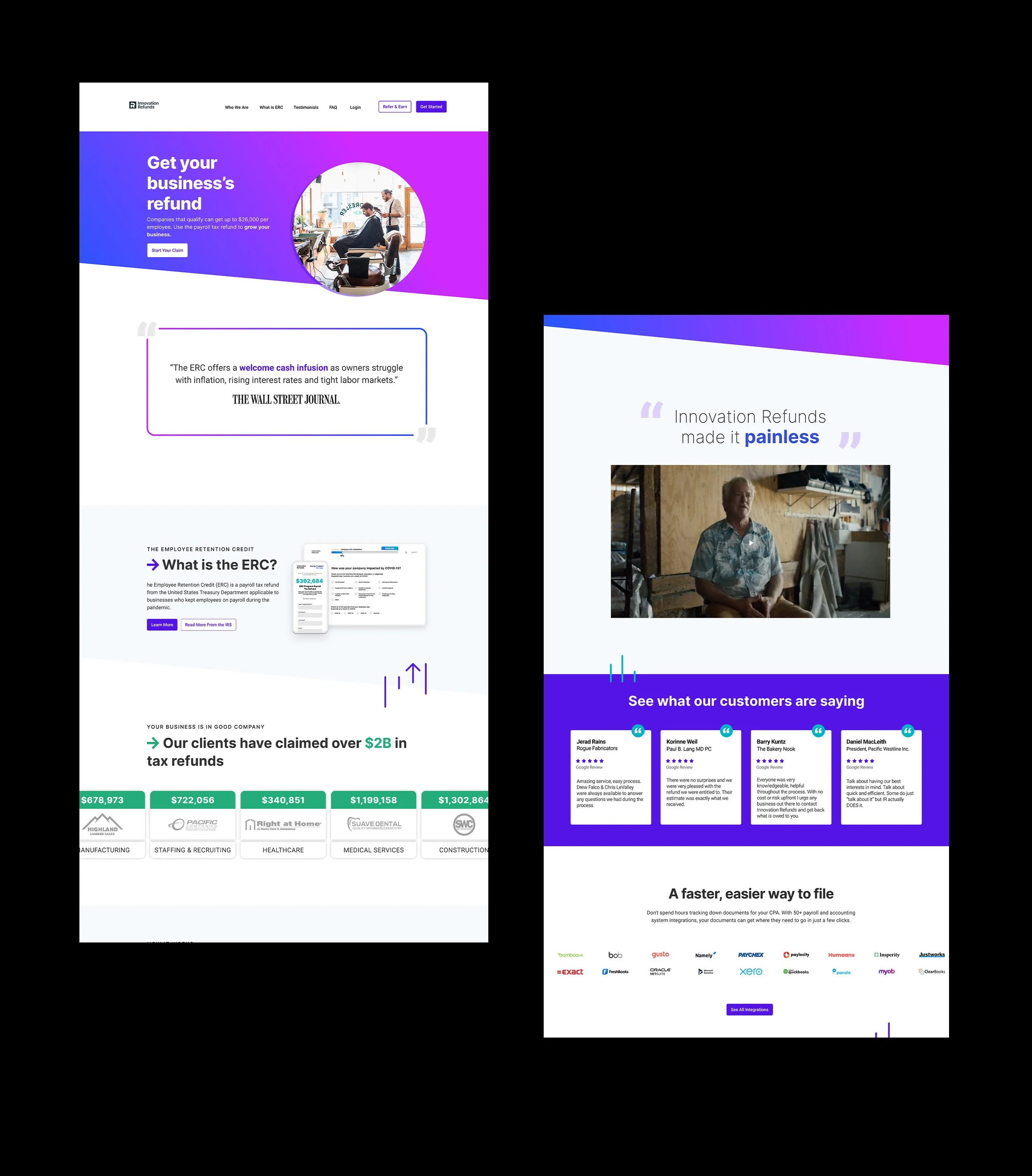 In my creative role, I played a crucial part in aligning bank B2B marketing materials with the new brand identity. This included refining messaging for financial institutions and emphasizing Innovation Refunds' value in facilitating the Employee Retention Credit.